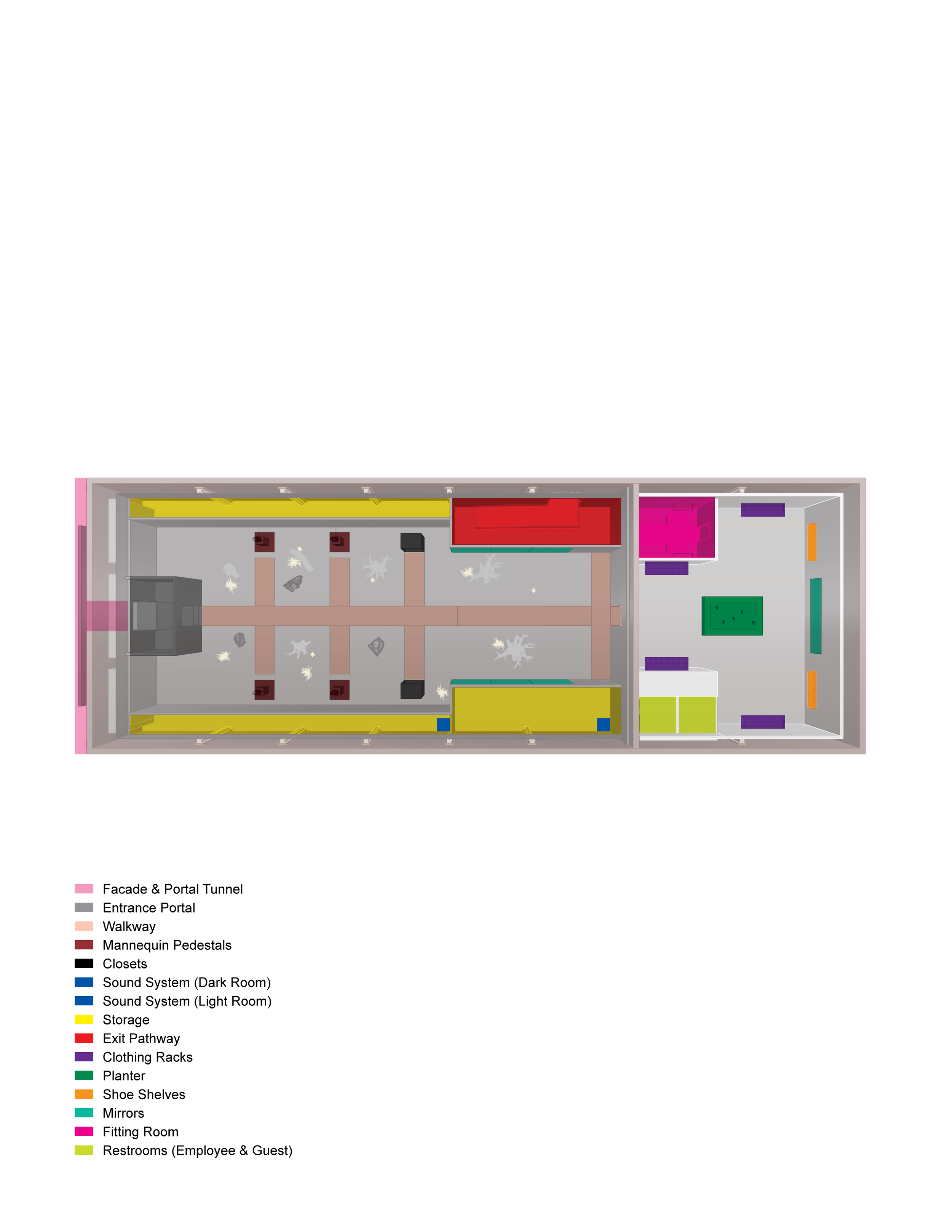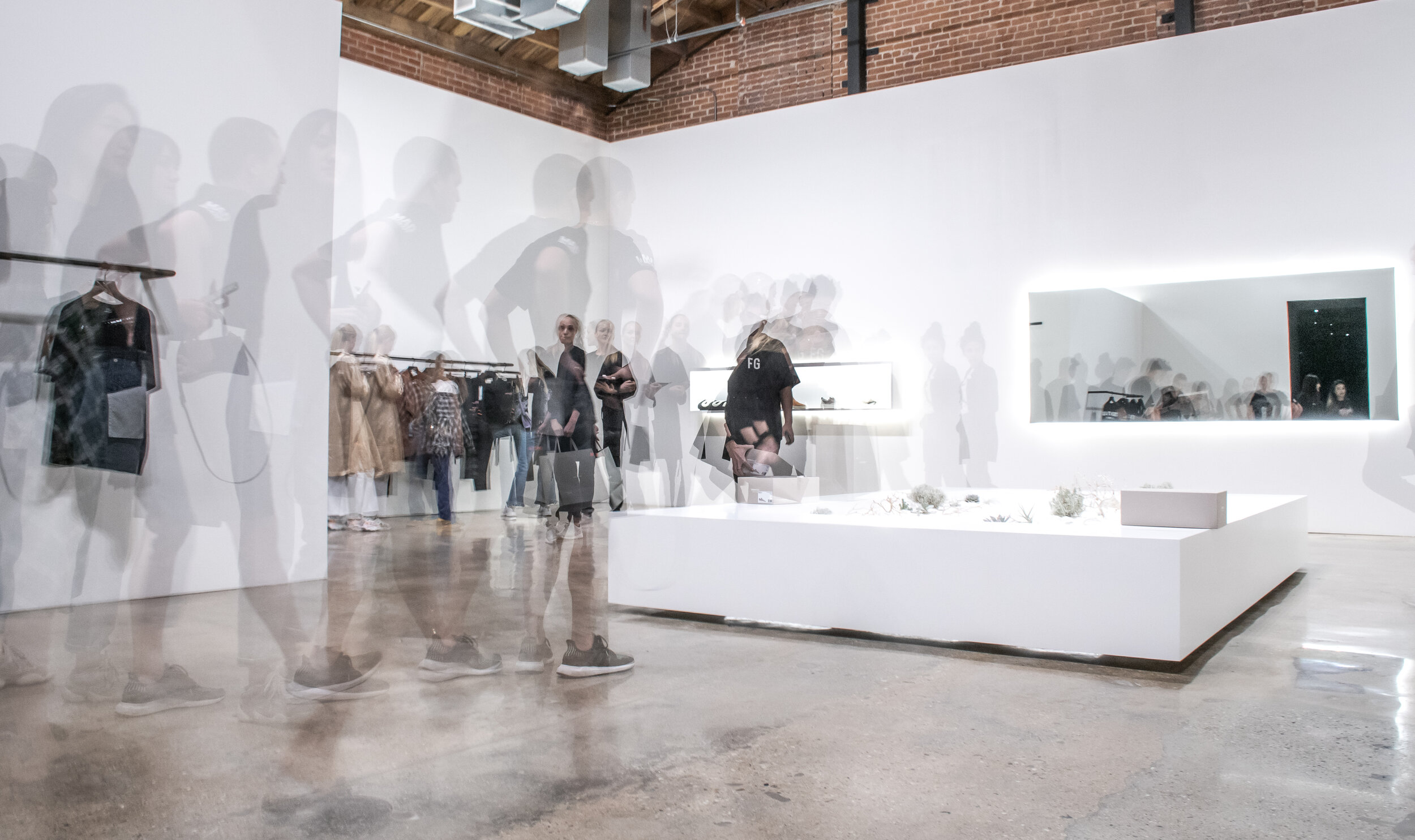 Atmosphere is an ephemeral retail experience for the Sixth Collection of fashion brand, Fear Of God. The store is experienced as a procession through a dark, somber museum where products are placed carefully in the environment, respectfully out of reach. At the end of the path is a bright portal, which guides the user to a sunlit room where they are greeted by sales associates and products in reach for closer inspection and purchasing.