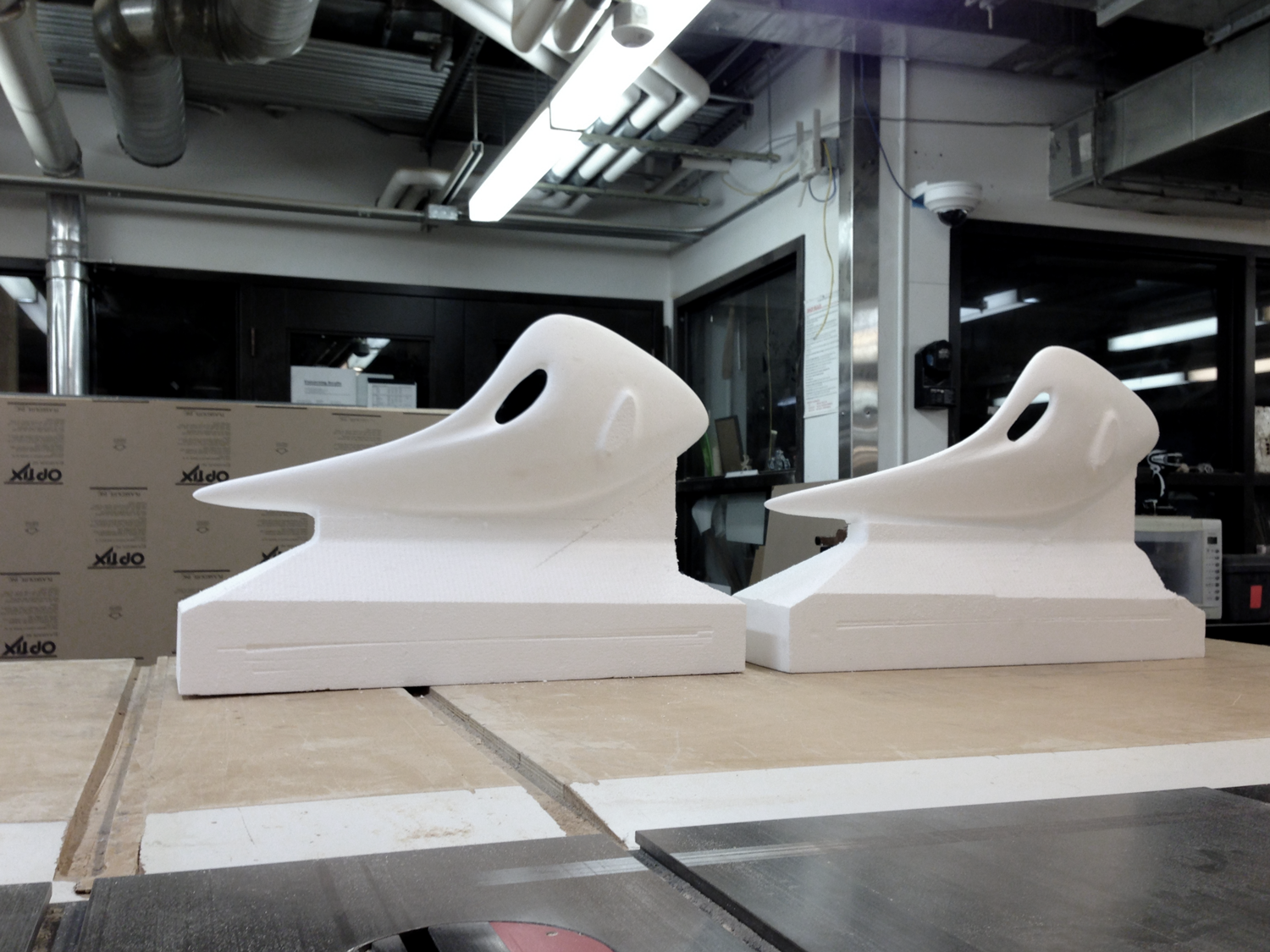 Process: Rhinoceros 3D with T-Splines Surface Modelling, Kuka 5-Axis CNC, Sanding